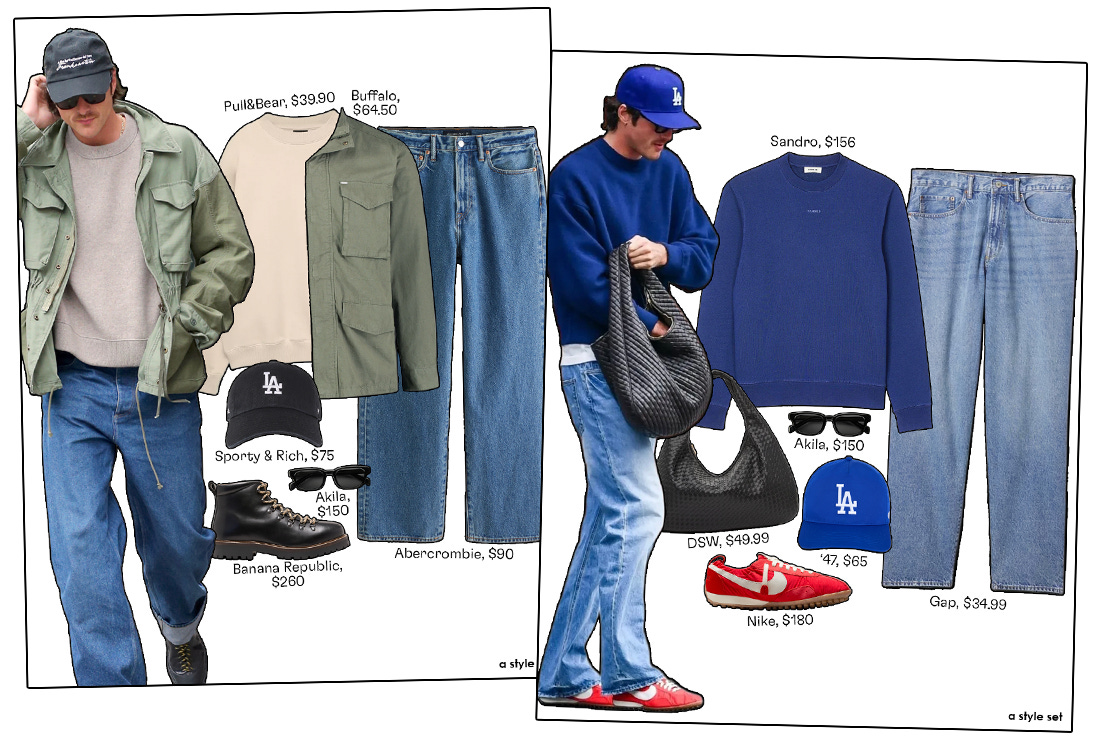 You guys love Jacob Elordi’s outfits, so we’re back with another round of recreations. Unlike Olivia Rodrigo (see above), Jacob generally wears high-end brands with a steep price tag, making his outfits a bit more difficult to recreate (but not impossible nonetheless). Just choose similar pieces! For example, in the first outfit Jacob’s wearing the Bottega Veneta Compact Cashmere Jumper for $3,400. We replaced it with a Pull&Bear boxy sweatshirt for $34.99.